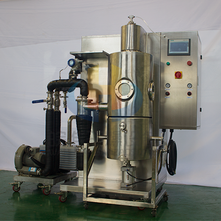 1、實驗型噴霧冷凍干燥機把噴霧干燥和真空冷凍干燥二者有機的結合起來,所需的干燥時間極短,縮短了傳統(tǒng)的真空冷凍干燥時間,且干燥后的物料為粉狀的固體,經(jīng)噴霧冷凍干燥的物品,原有的生物、化學特性基本不變,易于長期保存,加水后能恢復到凍干前的形態(tài),并且能保持其原有的生化特性